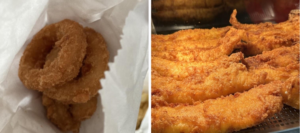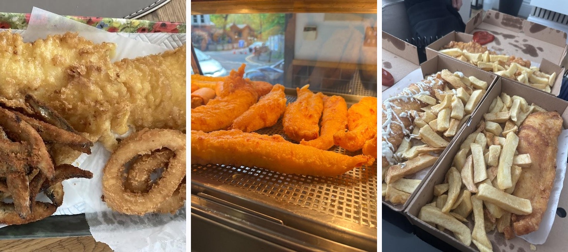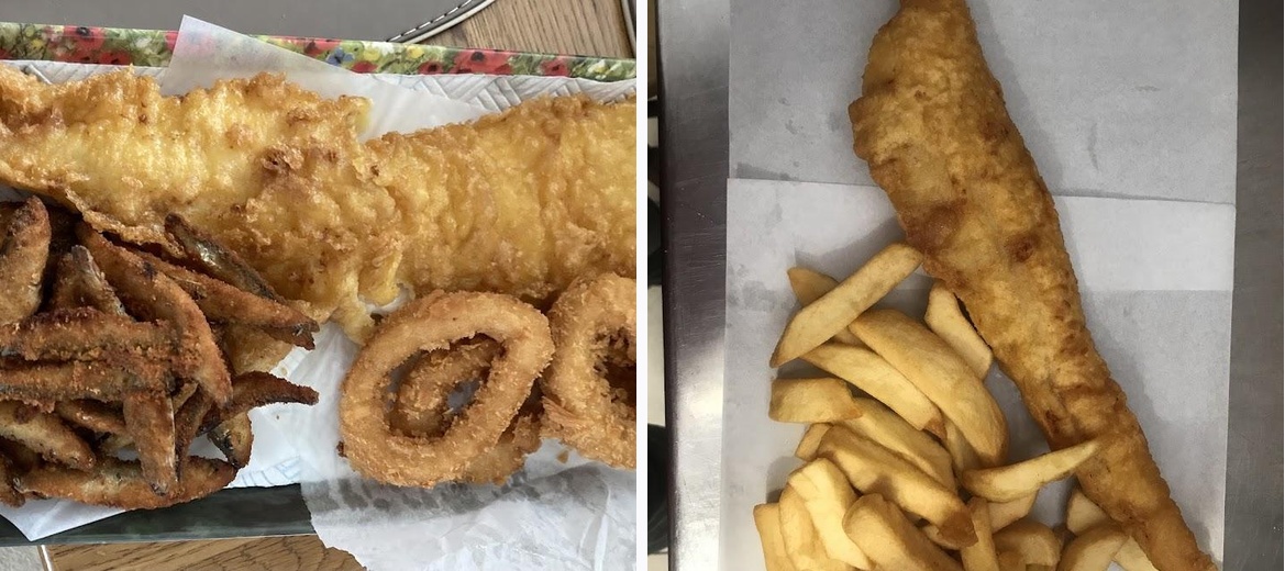 Definitely try the cod or haddock with a side of mushy peas. The chips are always hot and golden, and don’t forget to ask for extra ketchup or curry sauce.